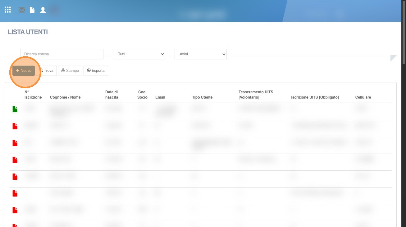 2. Cliccare su “Nuovo” (Previa verifica di preesistenza in anagrafica…)