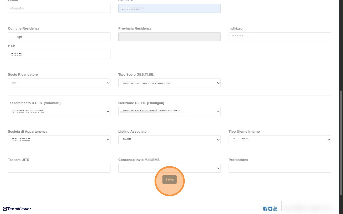 8. Una volta salvato verrà aperto il dettaglio utente del nuovo tiratore