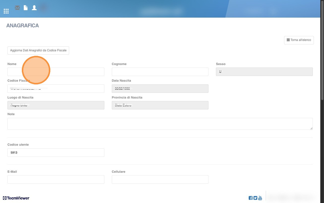 3. Cliccare nel campo di testo e digitare il codice fiscale del nuovo tiratore