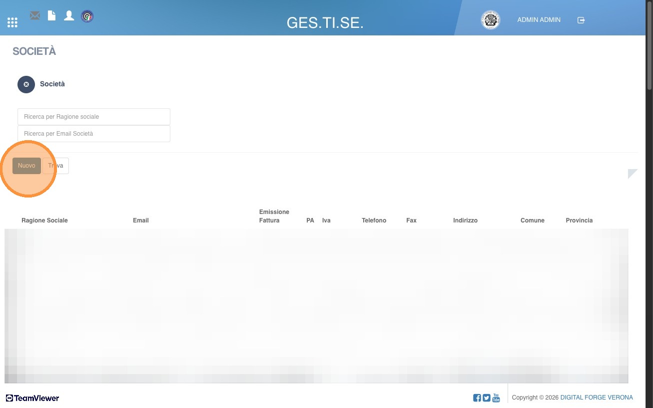 Inserimento di una nuova società nel gestionale