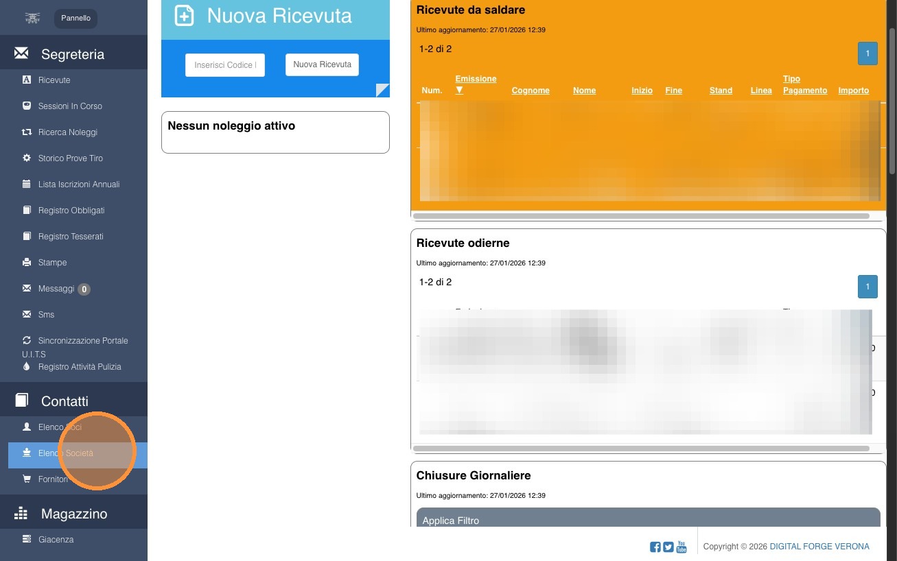 2. Cliccare su “Elenco Società”